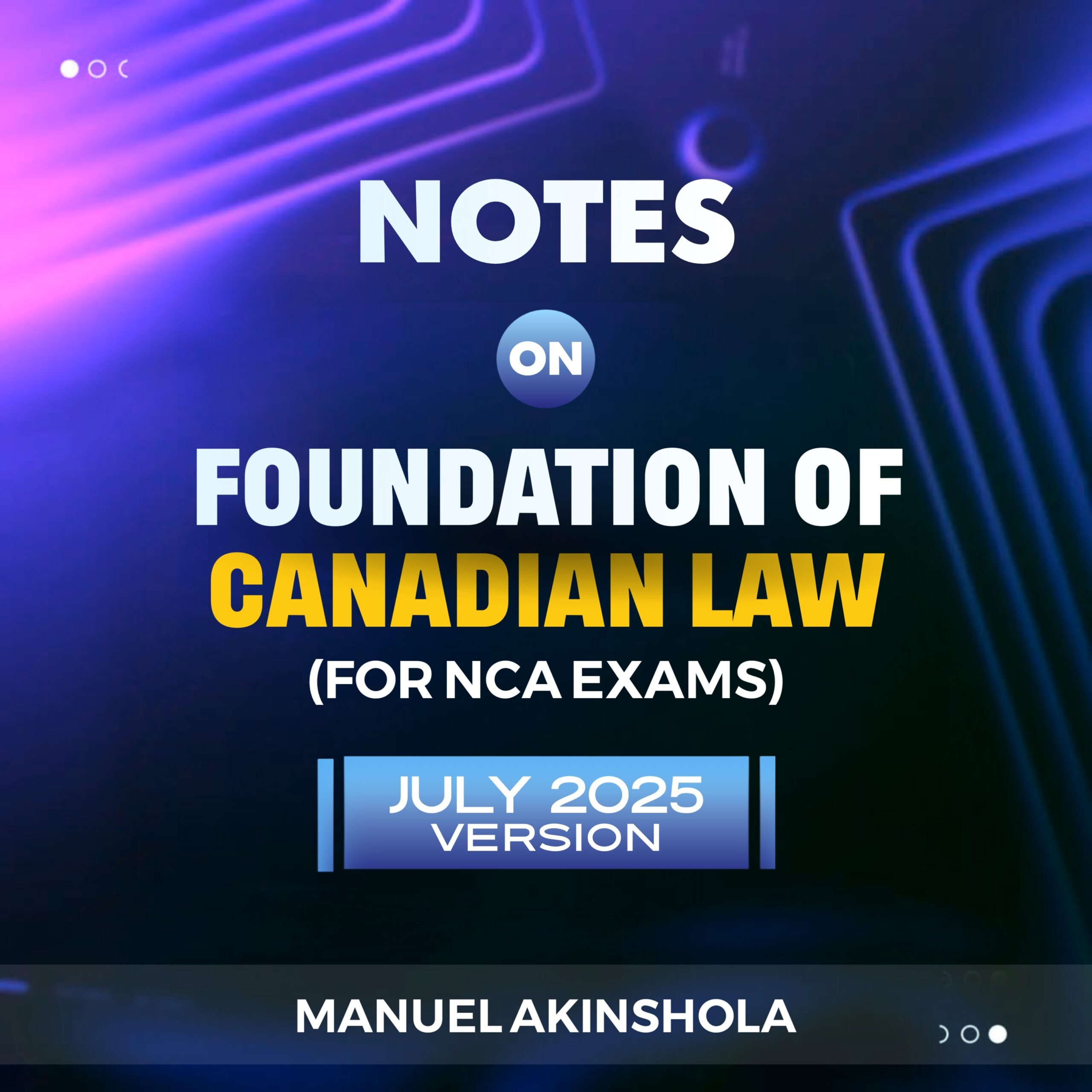 Foundations of Canadian Law Notes by Manuel Akinshola (July 2025 Version). The Notes can be instantly downloaded after purchase, if paying by INTERAC transfer, the purchased notes will be emailed to you upon receipt of proof of payment. We attempt to fulfill all orders within 48 hours of purchase, if you are experiencing any issues with the checkout process, please email inquiries@ncaguides.com. For a faster checkout process, we recommend that you make payment by credit card and the notes will be immediately available for download.